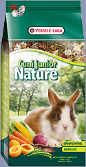Nature Cuni Junior je potpuno prilagođena hrana prehrambenim potrebama mladih kunića i patuljastih kunića, koja se koristi do 6 mjeseci starosti. Ovaj vrhunski spoj prirodnih komponenti sadržava sve bitne hranjive tvari, vitamine, minerale i aminokiseline koji su potrebni za optimalan rast i razvoj. Cuni Junior Nature sadrži extra vlakna, ljekovitog bilja, povrća i dodataka neophodnih za zdravlje: odličan za probavu, dobar za zubnu higijenu, sjajnu dlaku i savršeno zdravlje. Velike razlike u sastojcima osiguravaju varijacije okusa i velik apetit
