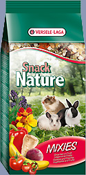Snack Nature Mix je komplentna hrana za patuljaste zečeve, zamorace, činčile, patuljastog hrčka, gerbilse, miševe, štakore i chipmunks. Ovaj ukusan, zdrava mix, prepun povrća, ljekovitog bilja i voća, savršen je dodatak vašem ljubimcu dnevni meni i to će potaknuti i svoje stanje i vitalnost.