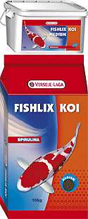 "Sve u jednom" hrana vrhunske kvalitete za prehranu Koi riba, Fishlix Koi Medium (4 mm) je idealna prehrana za držanje i uzgoj Koi riba. Optimalni omjer proteina/masti osigurava visok udio energije u organizmu. To donosi bolju probavljivost hrane, manje izmeta i manje zagađenja vode. Ove plutajuće žitarice sadrže alge Spirulina i stabiliziranog beta-karotena. Oni potiču prirodne boje ribe. Visok postotak stabiliziranog vitamina C i beta-glucanesa podižu imunitet kod riba.