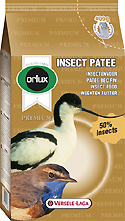 Orlux Insect patee Premium je kompletna hrana za sve ptice koje jedu insekte. Ona je također dodatna hrana za tropske i domestificirane ptice, male, srednje i velike papige i lorije. Insect patee Premium je hrana vrlo bogata životinjskim proteinima i sušenim insektima, mravljim jajima te meksičkim larvama. Sadrži minimalno 50% insekata. Zahvaljujući velikoj količini sušenih insekata, ova je hrana savršeno pogodna za vrijeme perioda parenja europske faune.