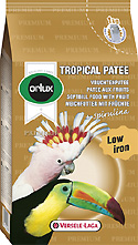 Orlux Tropical patee Premium je kompletna hrana za sve ptice koje jedu voće. Ona je isto tako dodatna hrana za male, srednje i velike papige i lorije. Ova hrana ima visoku hranjivu vrijednost zbog dodatka 100 % čistog i prirodnog meda. Tropical patee Premium je obogaćena grožđicama, bobicama planinskog jasena, papajom, marelicom, ananasom i jabukom. Ova hrana ima grubu strukturu radi lakše probave. Ova hrana ima vrlo nizak postotak željeza: < 70 ppm. Pročitajte i svjedočenje Thierrya Cadeta.