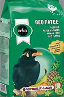 Orlux Beo patee je kompletna hrana za velike ptice koje jedu voće, kao što su na primjer indijski čvorci. Ova hrana ima visoku hranjivu vrijednost zbog dodatka 100 % čistog i prirodnog meda. Beo patee se bazira na mješavini voća koja sadrži marelice, ananas i grožđice. Ova hrana ima nizak postotak željeza: < 100 ppm.