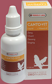 Oropharma Canto-Vit Tekućina je mješavinu vitamina i amino kiselina obogaćena vitaminom E. Ovaj proizvod je posebno naznačeno za pjevanje i plodnost. Vitamin E je biološki antioksidans: on štiti ptice i staničnu strukturu, a isto tako je dugo bio poznat za promicanje plodnosti i dobivanje optimalnog uzgoja ptica. Canto-Vit, sa svojim jedinstvenim sastavom osigurava lijepu kvalitetu pjevanja kanarinaca i zeba i povećava plodnost.