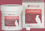 Oropharma Carni-Mix je skladna mješavina aminokiselina, vitamina, minerala, elemenata u tragovima, β-karotena, Florastimulansa i L-karnitina posebno razvijena za ptice grabljivice. Ovaj proizvod čuva ptice grabljivice u top stanju i ubrzava rast i razvoj mladih ptica. Carni-Mix doprinosi optimalnom razvoju skeleta, u slučaju manjka kalcija i / ili nedostatka vitamina D i za savršenu kožu i strukturu perja. Carni-Mix osigurava snažnu ljusku jajeta, optimalan rast mladih ptica, zdrav kostur s jakim vezama, kožu i savršenu strukturu perja i povećava tjelesnu otpornost. Ovaj dodatak prehrani je posebno razvijen za ptice grabljivice i pomaže spriječiti uobičajene poremećaje uzrokovane neuravnoteženom dijetom (npr. nedostatak kalcija i vitamina D, nedostatak).