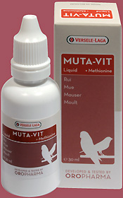 Oropharma Muta-Vit Tekućina je tekućina mješavina vitamina i amino kiselina obogaćena metioninom i cisteinom. Ovaj proizvod je posebno pogodan za mitarenje. Perje je uglavnom napravljeno od tvrdog tkiva proteina (keratin). Tijekom mitarenja, ptica je podložna stresu zbog čega je potrebno dati Muta-Vit. Sumporne aminokiseline u Muta-Vit neophodni su za proizvodnju keratina, građevni materijal za perje i kožu. Biotin osigurava dobru kvalitetu keratina. To jamči brzo i dobro linjanje.