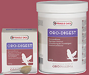 Oropharma Oro-Digest je crijevni omekšivač. Ovaj proizvod sprječava adheziju patogenih bakterija u crijevima, osigurava bolju konzistenciju izmeta, promiče higijenska gnijezda i sprječava preklapanje perja. Postoje bakterije u ptičjem probavnom traktu koje su bitne za dobru probavu. Dobre bakterije dominiraju u zdravih ptica. Međutim, ako prevladaju patogene bakterije, ptica će imati vodeni izmet što će rezultirati gubitkom velike količine tekućine i elektrolita. Liječenje antibioticima ubija i dobre i patogene bakterije. Oro-Digest služi kao probiotik ili hrana za dobru crijevnu floru, te će također osigurati da bakterije više nisu u mogućnosti da se pridržavaju uz crijevne stijenke tako da se prirodna crijevna flore može oporaviti i probava se normalizira.