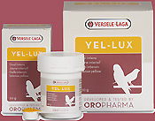 Oropharma Yel-lux je prirodna žuta boja temeljan na luteinu. Ovaj dijetetski dodatak pojačava žutu boju perja i povećava otpornost. Perje se sastoji od mrtvih stanica i stoga se ne hrani metabolizmom, stanice apsorbiraju boju kad su formirane. U prosjeku se mijenja perje jednom godišnje. No ne od jednom. Mitarenjem starog perja se stimulira stvaranje novog i ovo je postupan proces. Kad dodajete Yel-Lux se transportira do mjesta gdje pero raste i to mu daje više intenzivne žute boje. Pero zadržava svoju boju do formiranja novog pera.