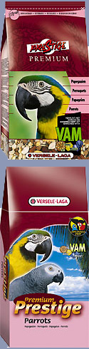Hrana za papige Prestige Premium je obogaćena mješavina hrane s pomoćnih elemenata koji pomažu papigama da ostanu u formi. Ova mješavina je sastavljena s pažljivo odabranim sjemenom obogaćenim extra vitaminima, aminokiselinama i mineralima, koje su ektrudiranue u VAM kuglice. Osim toga, ova ukusna VAM kuglica sadrži Florastimulator, koji jamči optimalnu funkcioniranje crijevne flore. Očišćene ljuske oštrige osiguravaju dobru funkciju mišića želuca i ispravnu ravnotežu kalcija/fosfora.